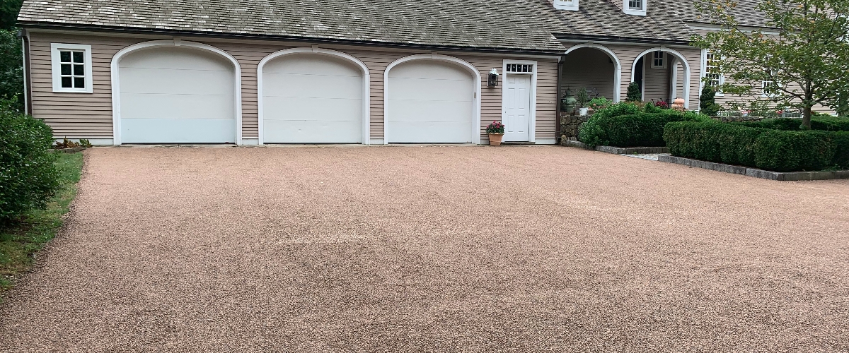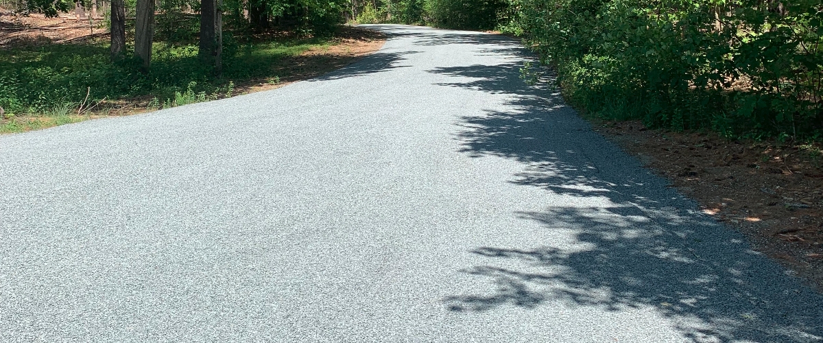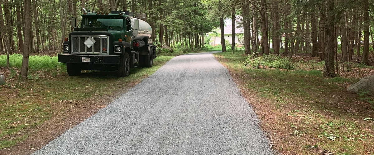A stone-sealed surface, also known as chipseal or simply oil and stone, is a combination of 285° liquid asphalt combined with stone, the shape and decorative color of your choice. The process will give your driveway, sidewalk, parking lot, or private road that antique country look.